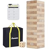 - Completed Giant Outdoor Games: Aivalas Giant Tumble Tower set comes with everything you need: 56 PCS Handpick Pine Wooden Blocks, 1 PCS Yard Dice, 1 PCS Scoreboard with Marker and 1 PCS Carrying Bag. The Large Tower can be stacked up to 4.2 FT if the players are skillful enough